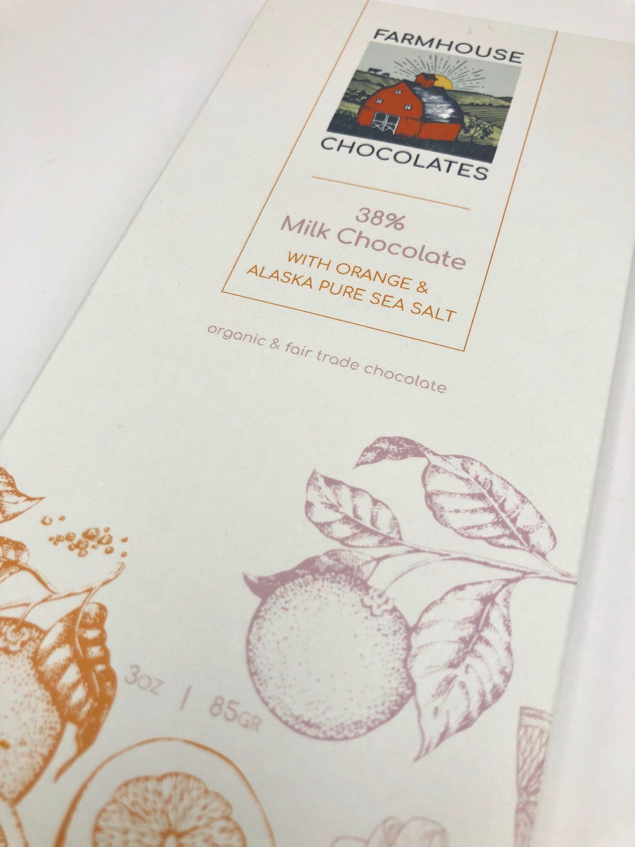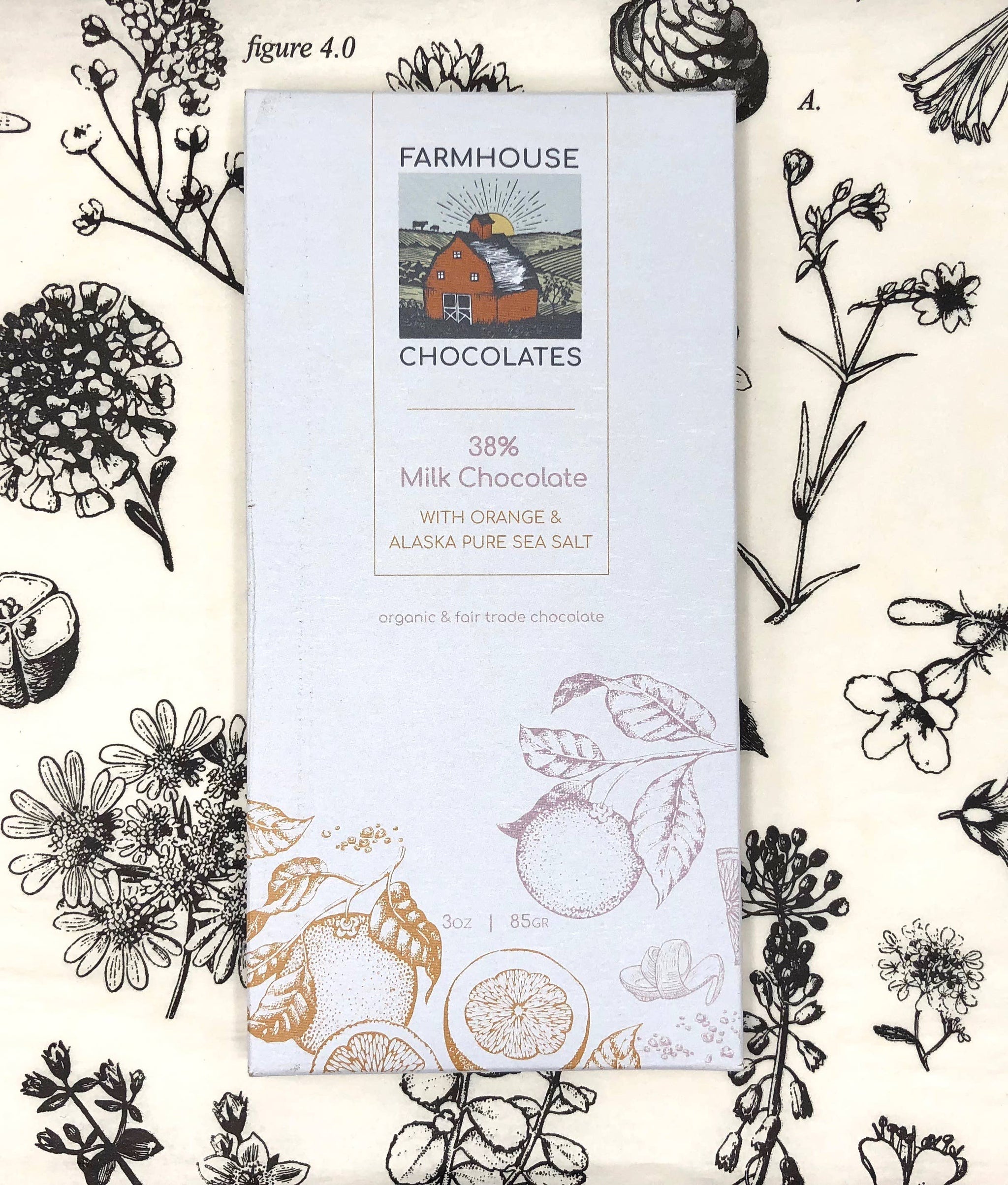 38% Organic Milk Chocolate Bar w/ Orange & Alaskan Sea Salt