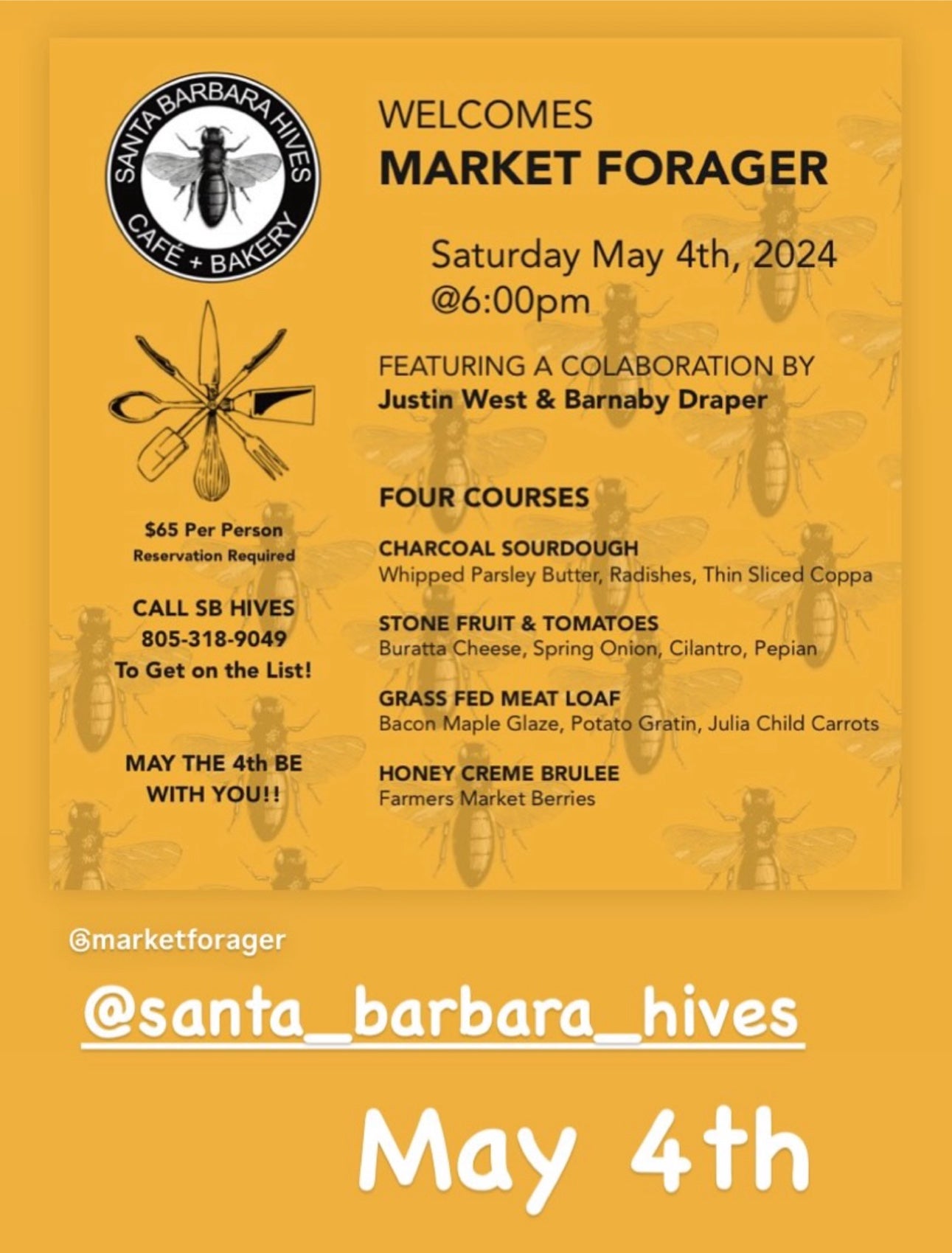 Please join us May 4th at 6pm for a four course pop up dinner by Chef Justin West of Market Forager (formerly of Restaurant Julienne).